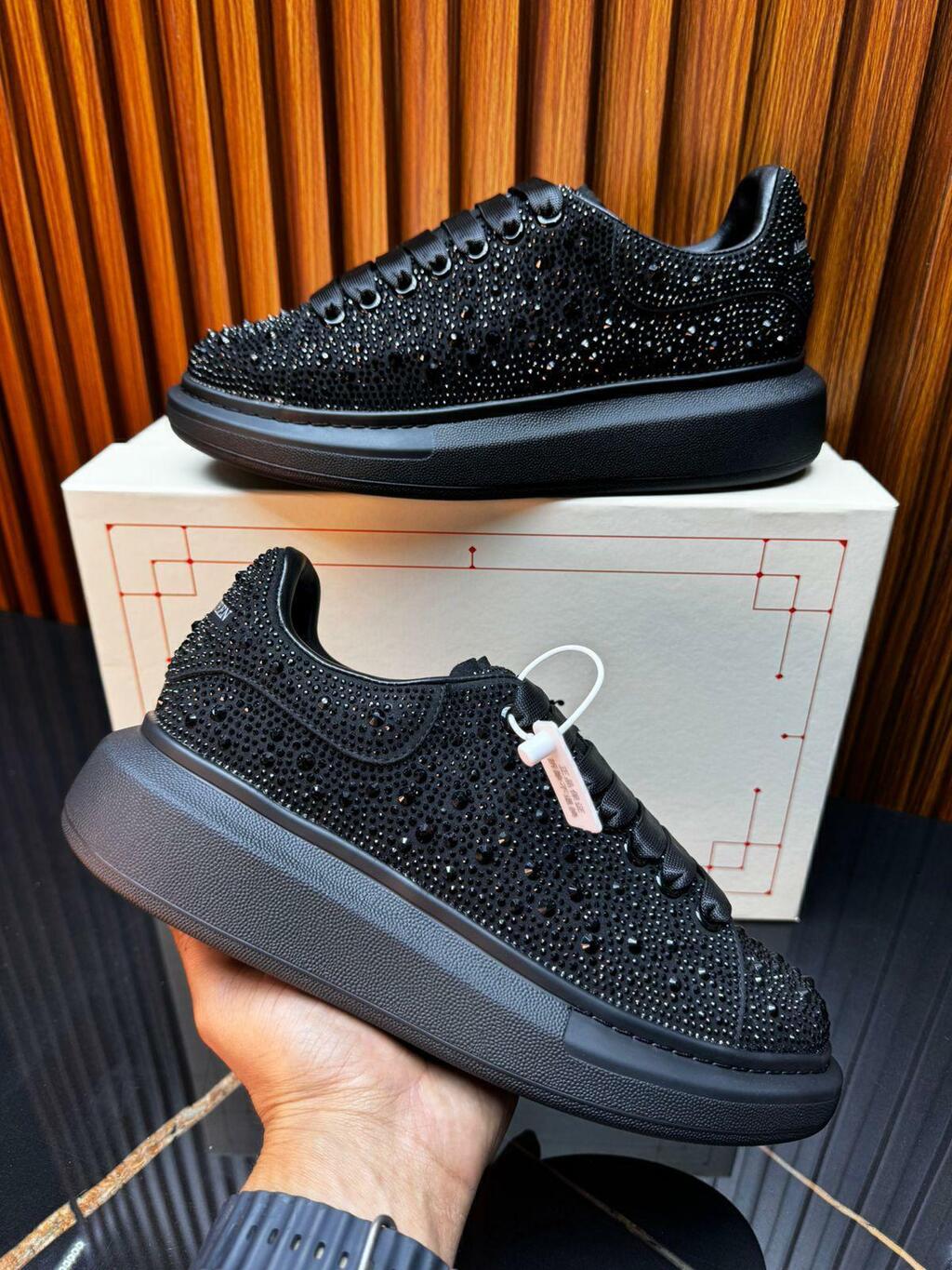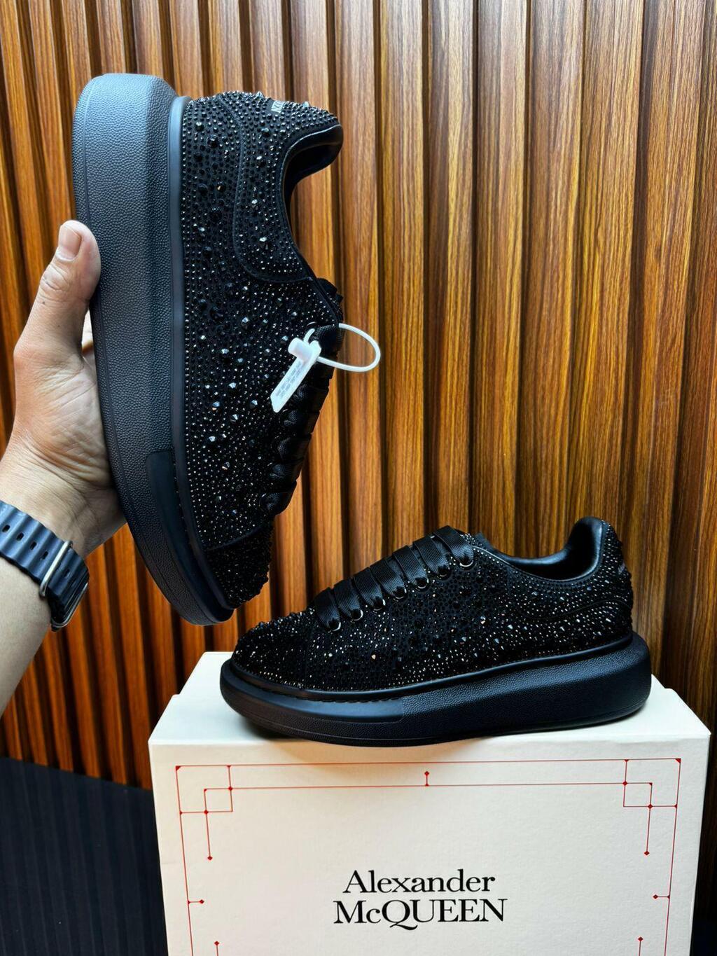 ¡Eleva tu estilo con los Tenis Alexander McQueen negros con brillo, la elección perfecta para quienes buscan un diseño elegante y moderno!